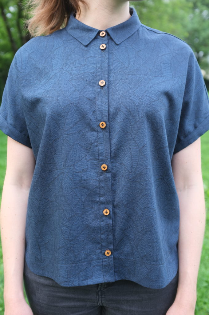 I didn’t officially take part in Me Made May this year but I used the month to analyse my day to day outfits and identify any gaps in my wardrobe. One thing that I’m definitely lacking are loose summer tops to wear with slim fitting shorts or trousers (my go-to silhouette). Lately I’ve been in particular drawn towards boxy button-up shirts. One of the patterns I’ve seen pop up a lot is the Style Arc Blaire Shirt & Dress and have to say I loved every version I’ve seen so far. So when I tried to decide what I should use this pretty Kokka Leaf Print fabric for (from John Lewis but unfortunately they don’t stock it anymore) I realised the Blaire would be the perfect match.